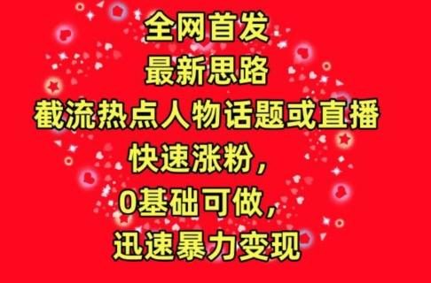 全网首发,截流热点人物话题或直播,快速涨粉,0基础可做,迅速暴力变现【揭秘】