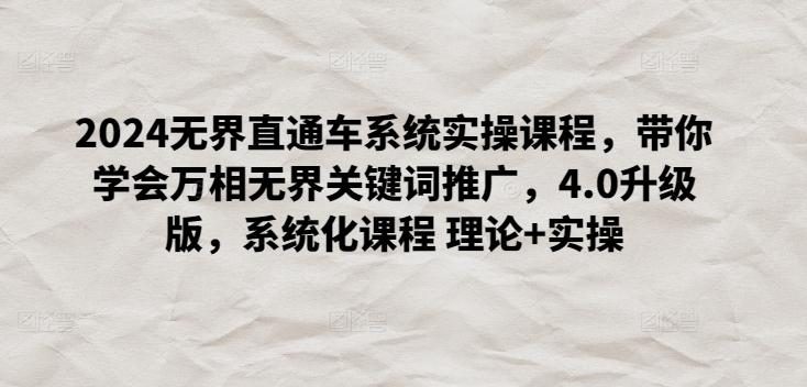 2024无界直通车系统实操课程,带你学会万相无界关键词推广,4.0升级版,系统化课程 理论+实操