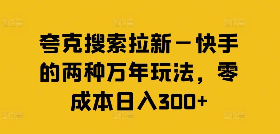 夸克搜索拉新—快手的两种万年玩法,零成本日入300+