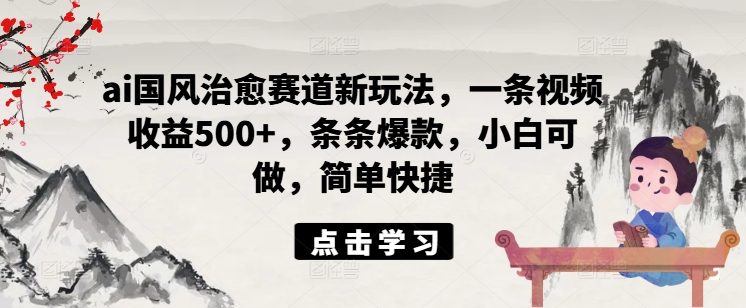 ai国风治愈赛道新玩法,一条视频收益500+,条条爆款,小白可做,简单快捷