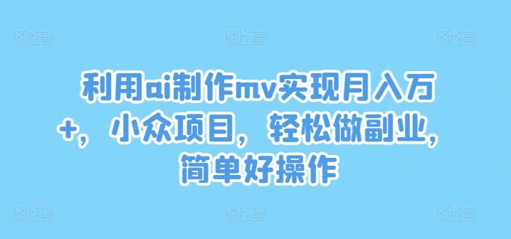 利用ai制作mv实现月入万+,小众项目,轻松做副业,简单好操作【揭秘】