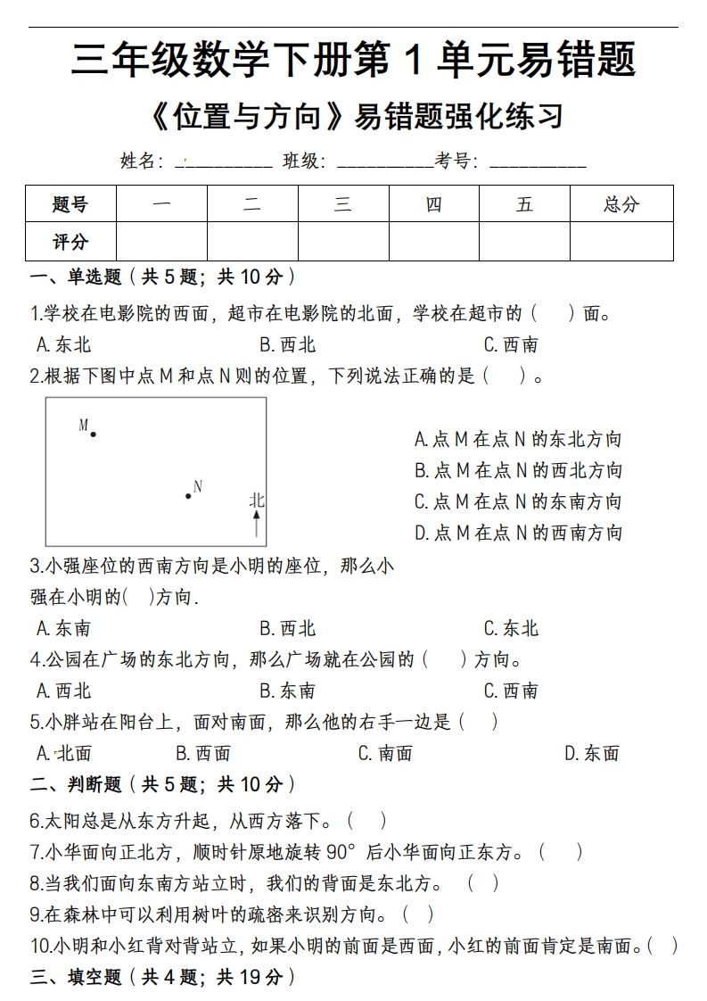 三下数学《位置与方向》易错精选强化练习题-含解析