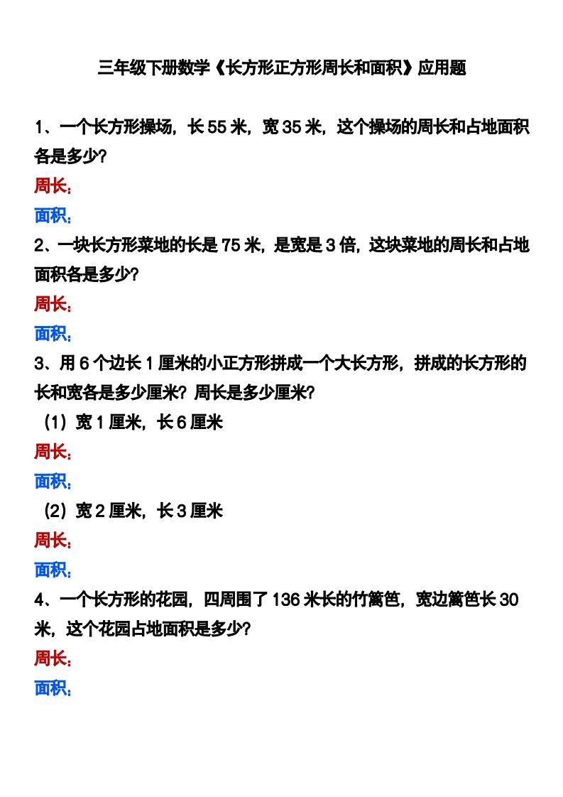 当前位置:首页学科年级三年级三下数学《长方形正方形周长和面积》应用题
