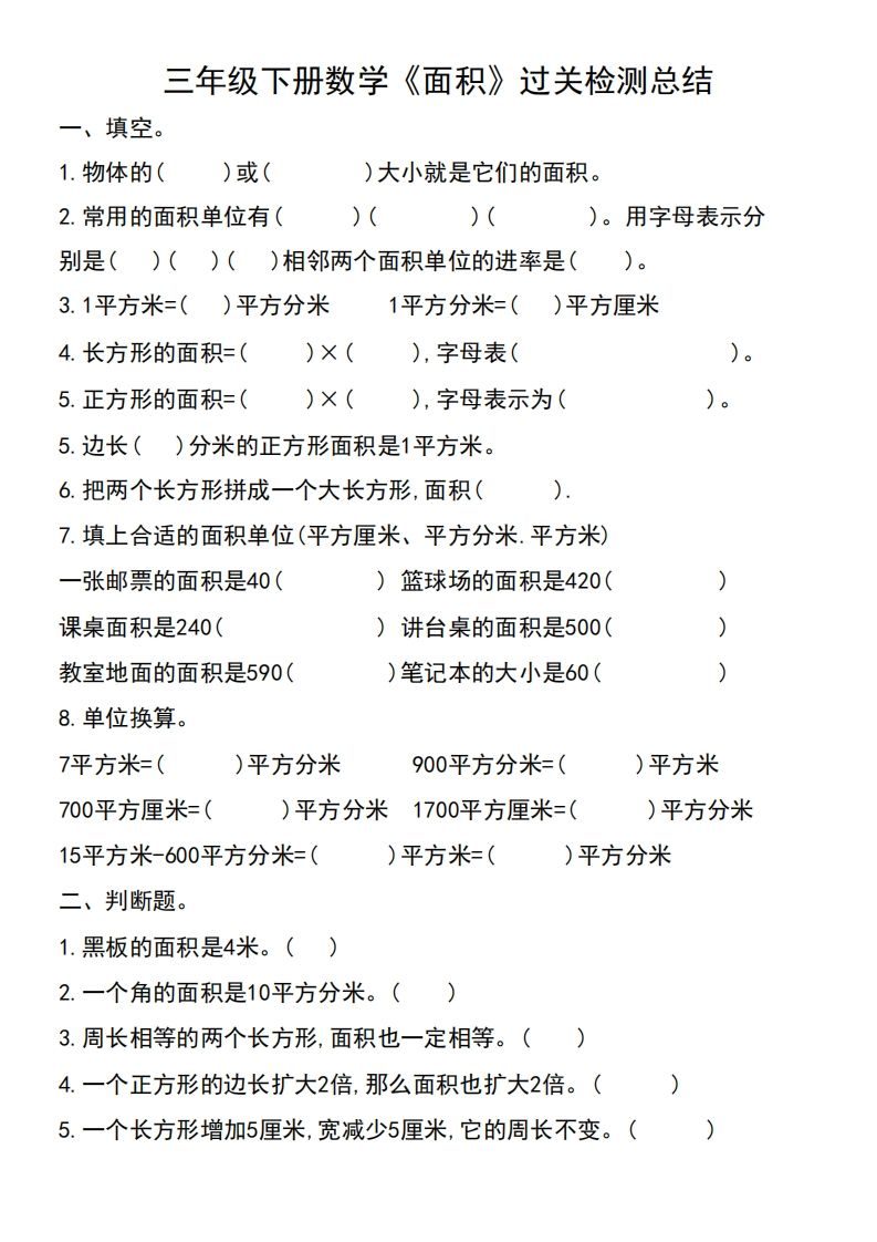 当前位置:首页学科年级三年级三年级下册数学《面积》过关检测总结