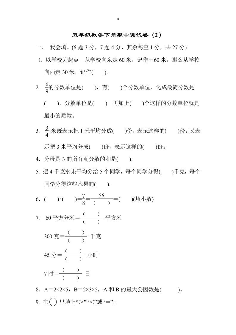 当前位置:首页学科年级五年级五下青岛版数学期中测试卷-2(63制)