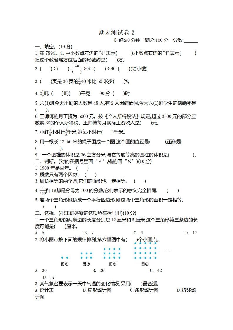 当前位置:首页学科年级五年级五下青岛版数学期末真题卷1(54制)
