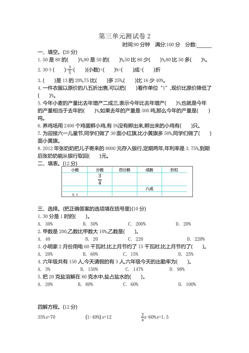 当前位置:首页学科年级五年级五下(54制)青岛版数学第三单元检测-2