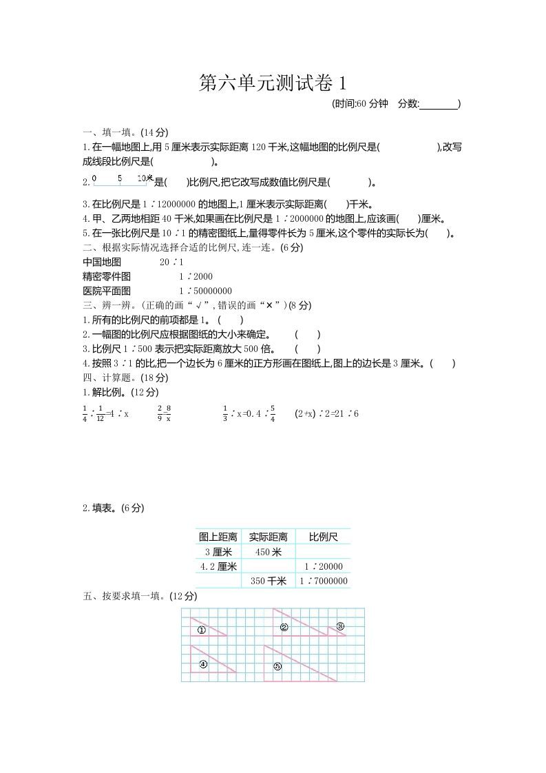 当前位置:首页学科年级五年级五下(54制)青岛版数学第六单元检测-1
