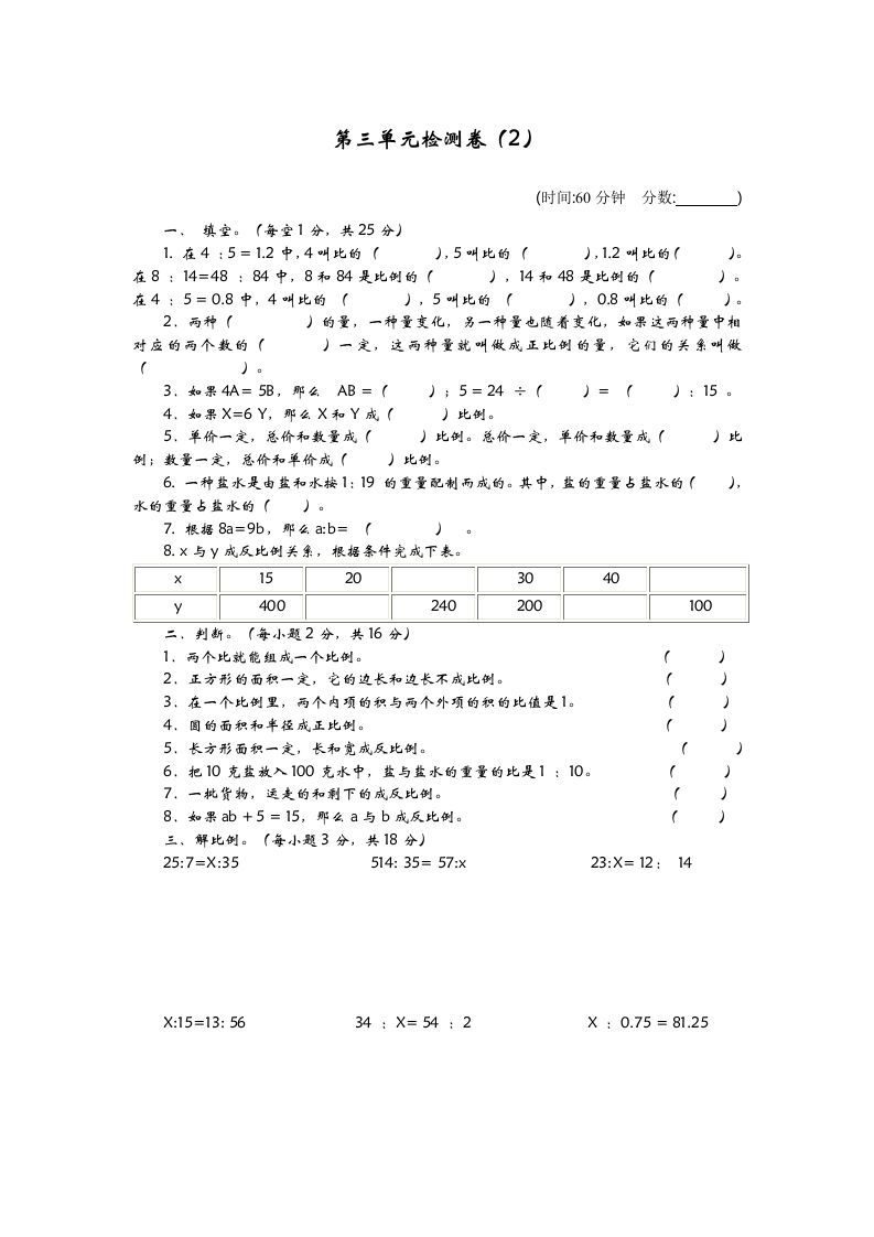 六下青岛63版数学第二单元检测卷-2