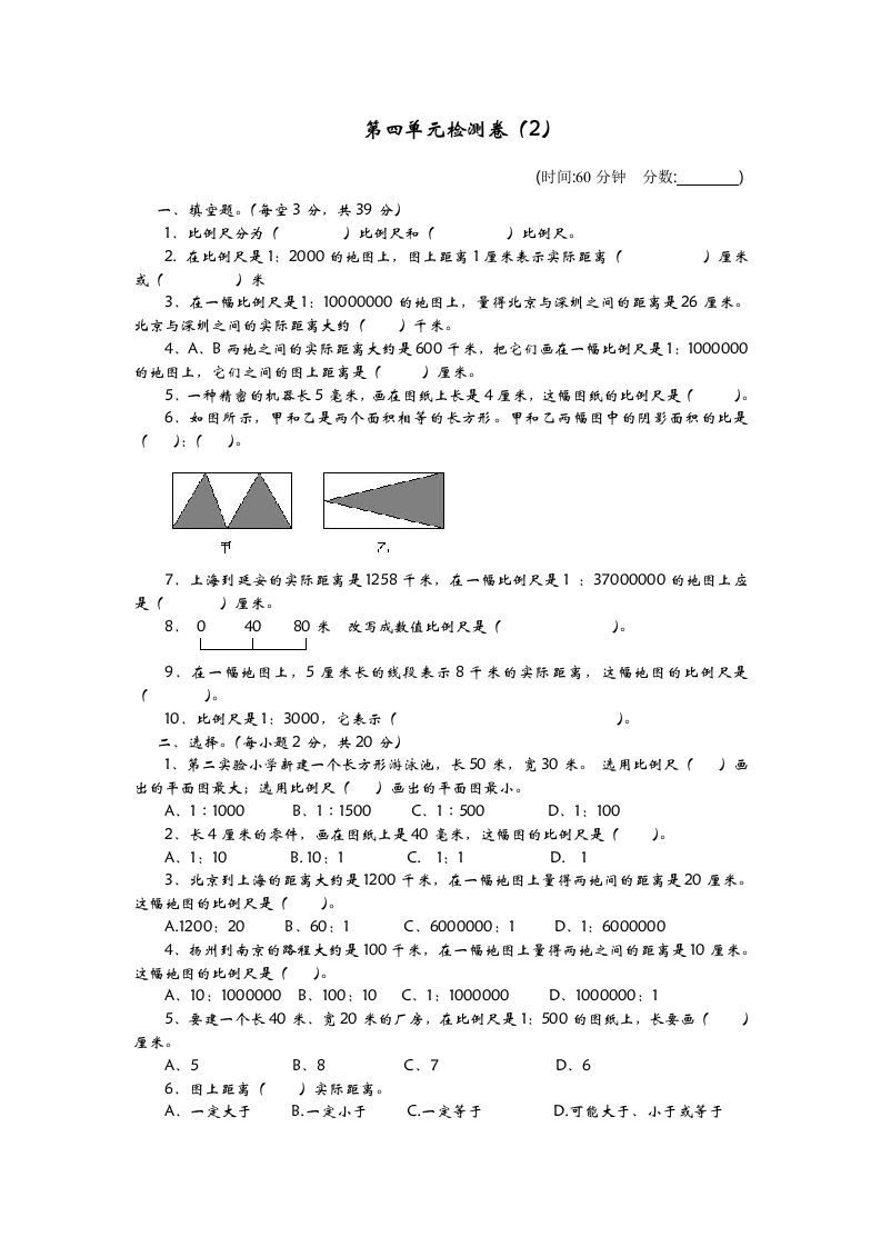 当前位置:首页学科年级六年级六下青岛63版数学第四单元检测卷-2