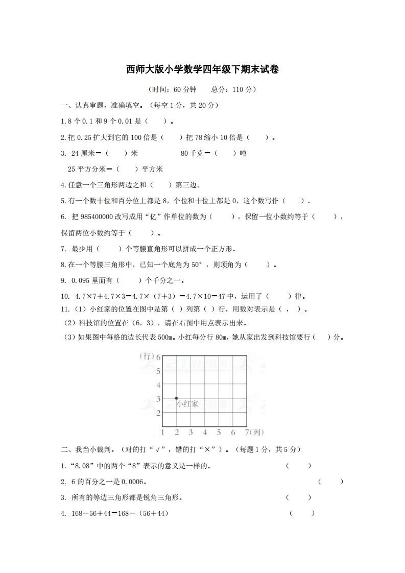 四下西师版数学名校期末卷-4