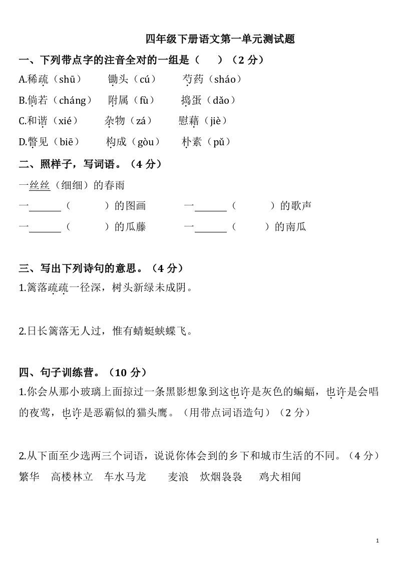 当前位置:首页学科年级四年级四下语文第一单元检测卷-2