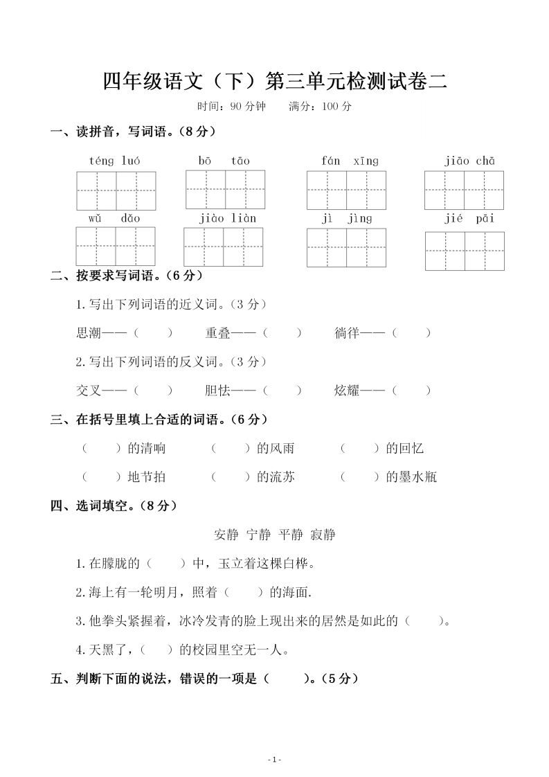 四下语文第三单元单元试卷-2