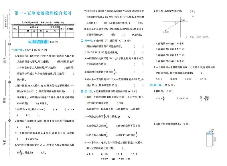 六下苏教版数学期中检测试卷-5