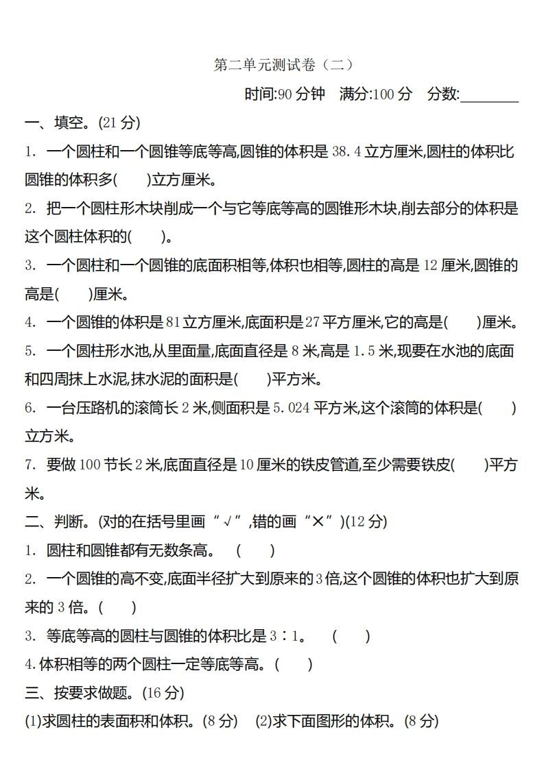 六下苏教版数学第六单元测试卷-1