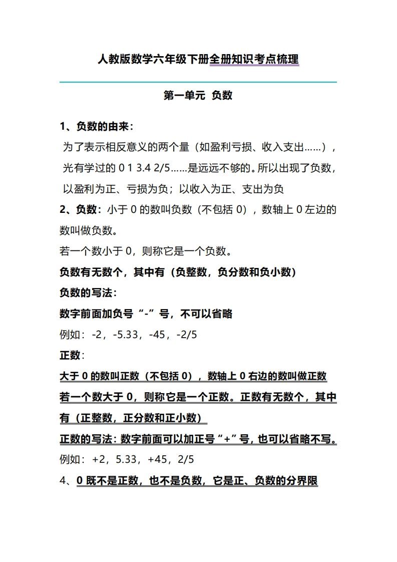 当前位置:首页学科年级六年级六下人教版数学全册知识考点梳理