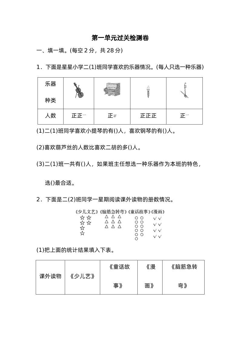 当前位置:首页学科年级二年级二下数学人教第一单元过关检测卷