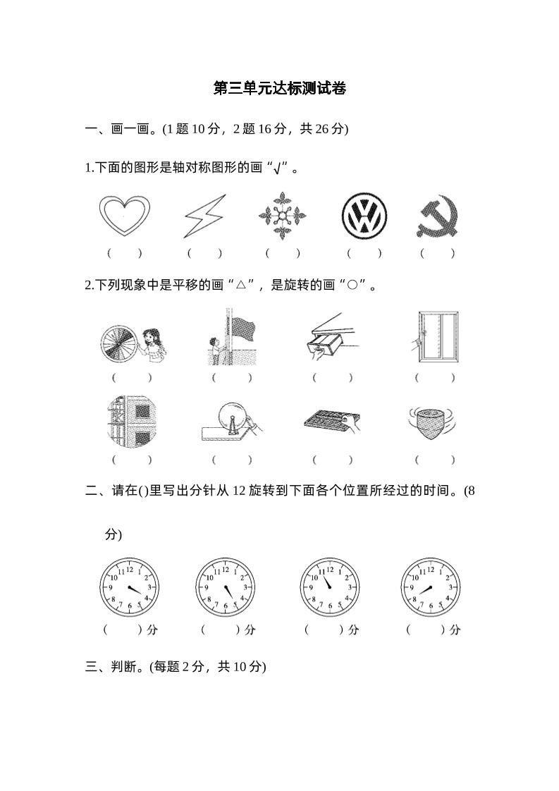 当前位置:首页学科年级二年级二下数学人教第三单元达标测试卷