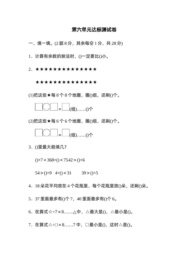 当前位置:首页学科年级二年级二下数学人教第六单元达标测试卷