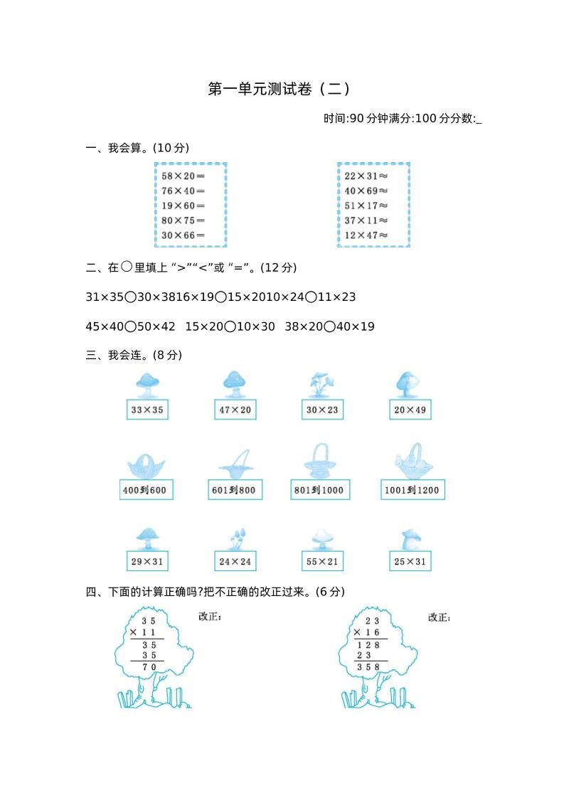 三下苏教版数学第一单元检测-1