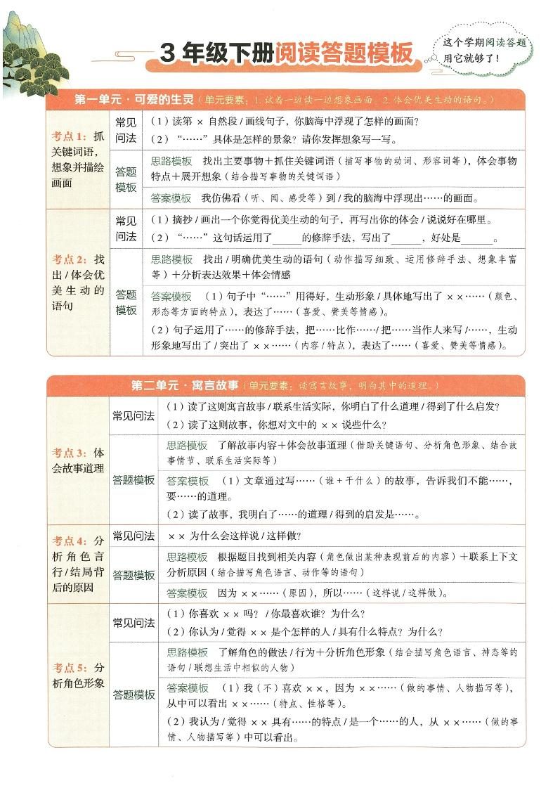 2025春三下语文同步阅读答题模版