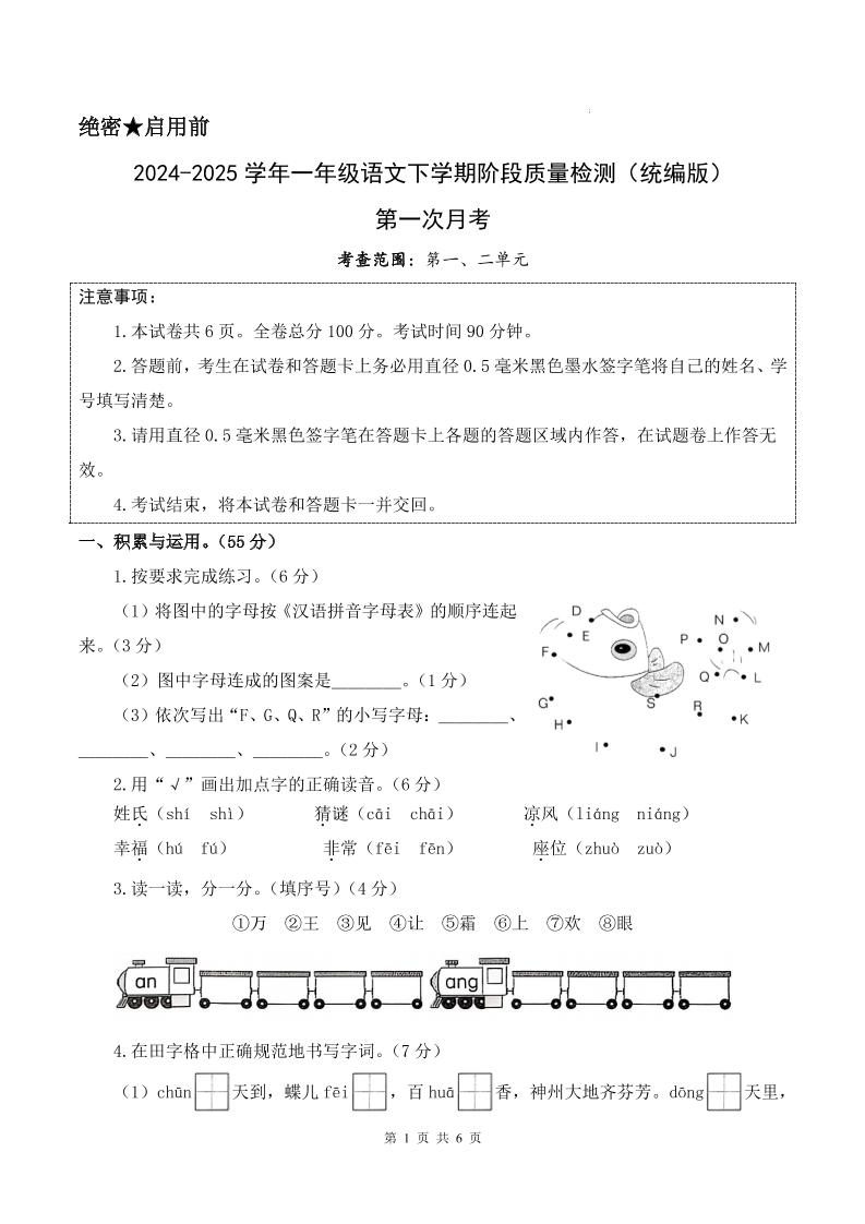 当前位置:首页学科年级一年级25新一下语文第一次月考检测卷(含答案8页)