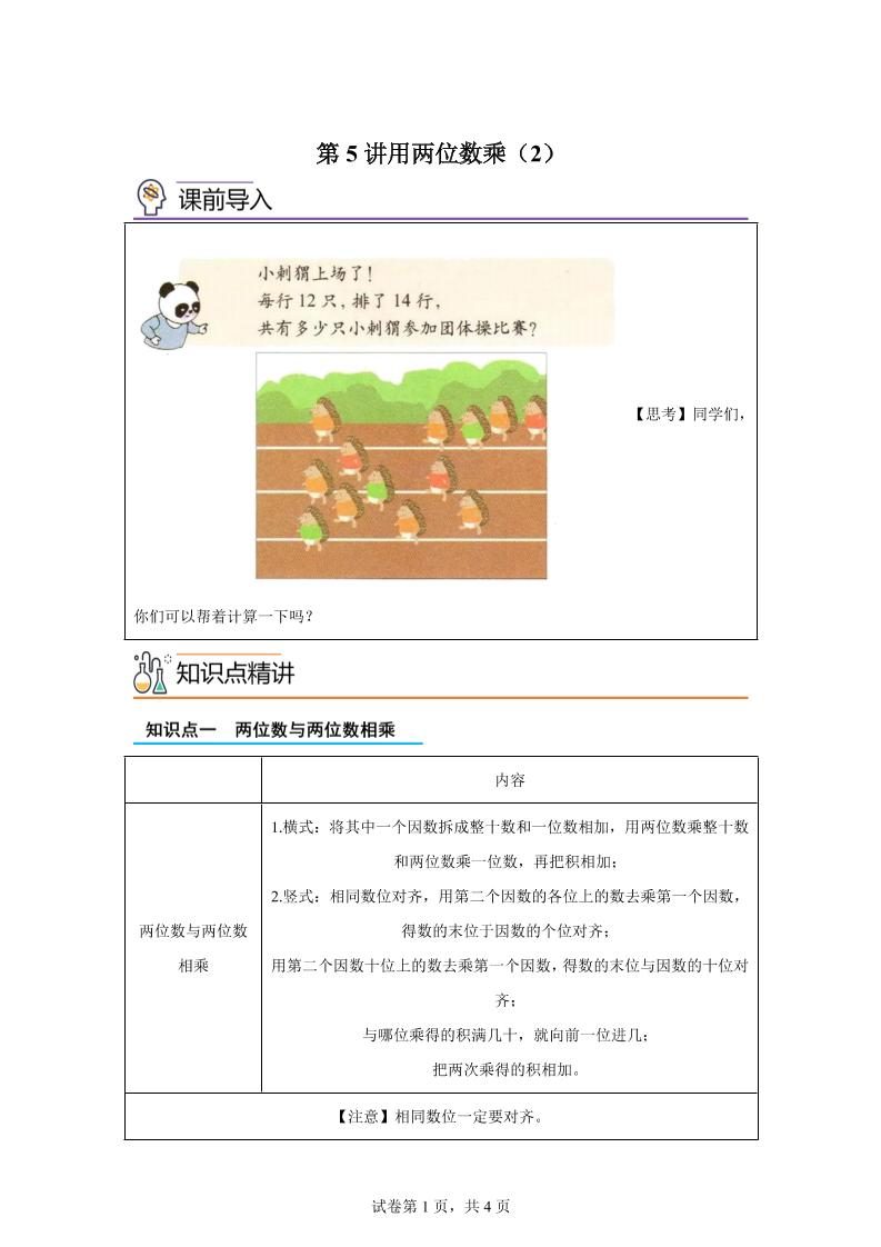 【课时】沪教版数学三年级下册2-2用两位数乘(2)练习卷