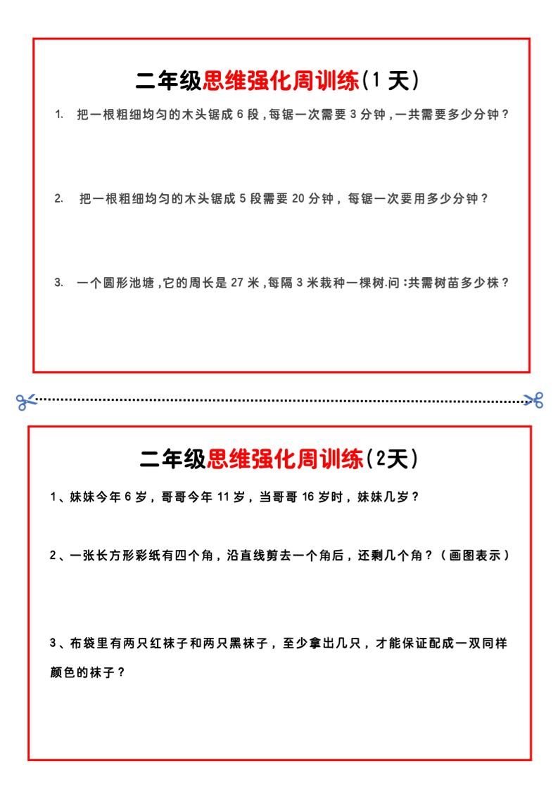 二年级下册数学思维题周训练小纸条-高清无水印完整版本