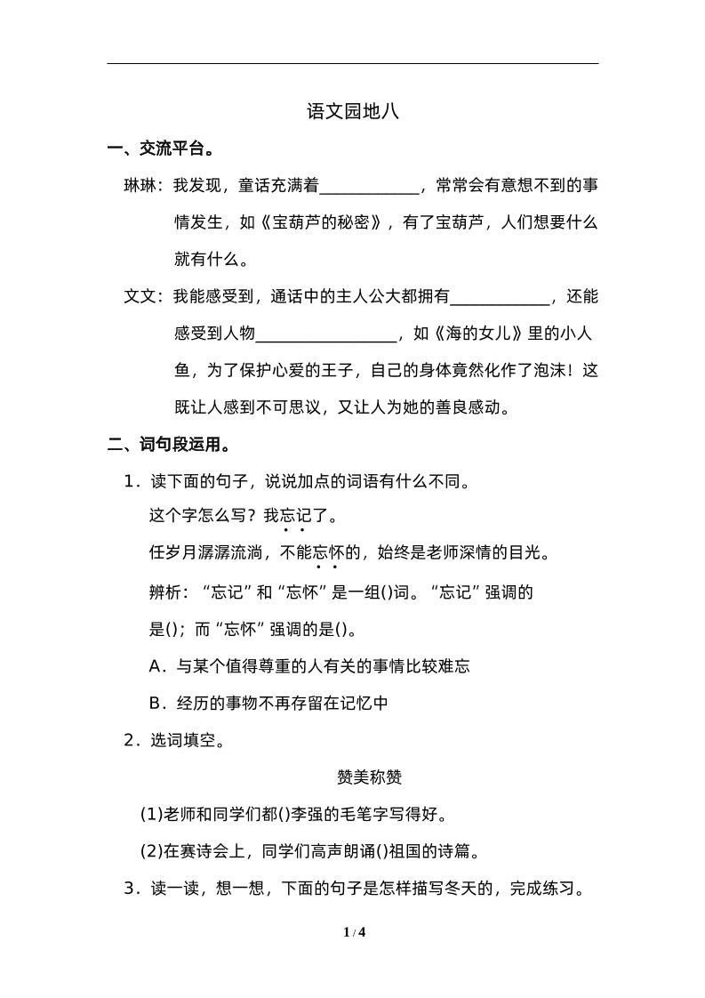 四下语文园地八:配套练习