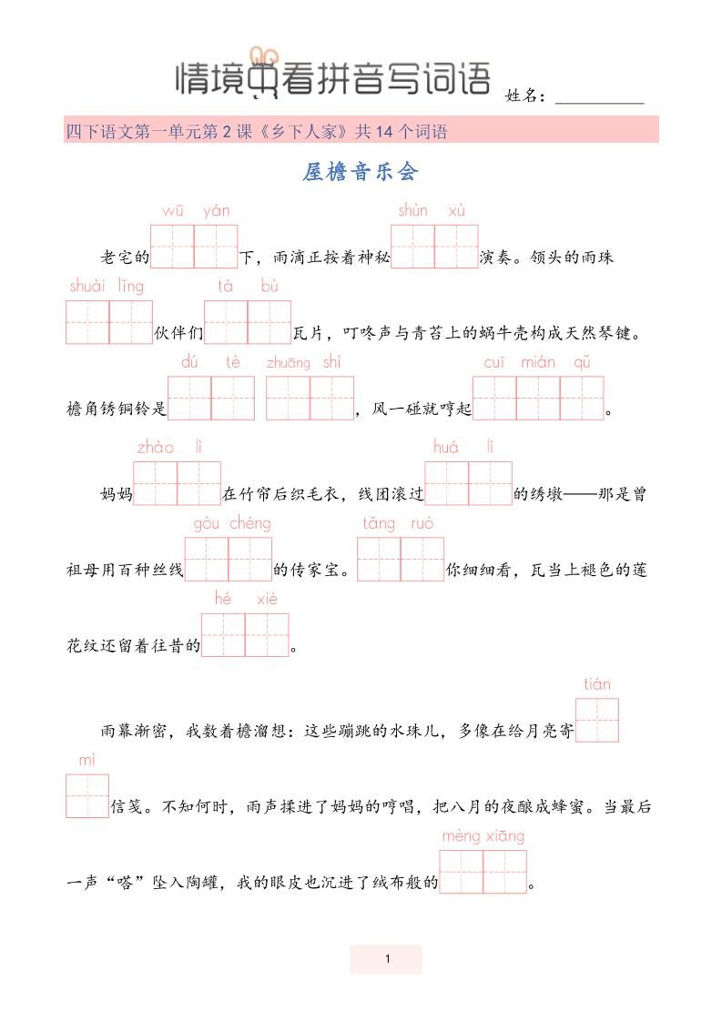 【情境中看拼音写词语】四下语文