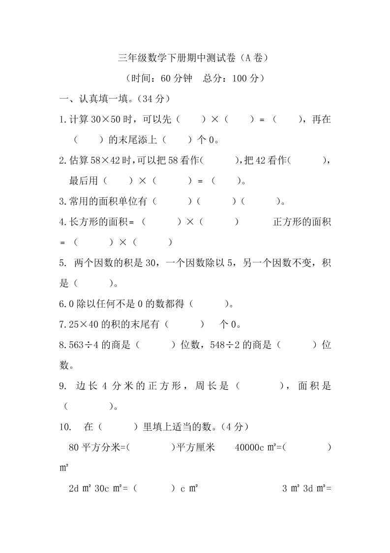 当前位置:首页学科年级三年级三下西师版数学期中考试试卷-1