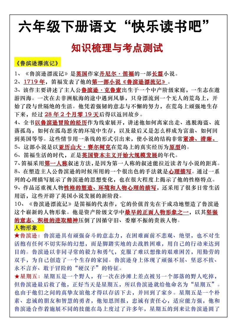 六年级下语文知识点梳理与练习
