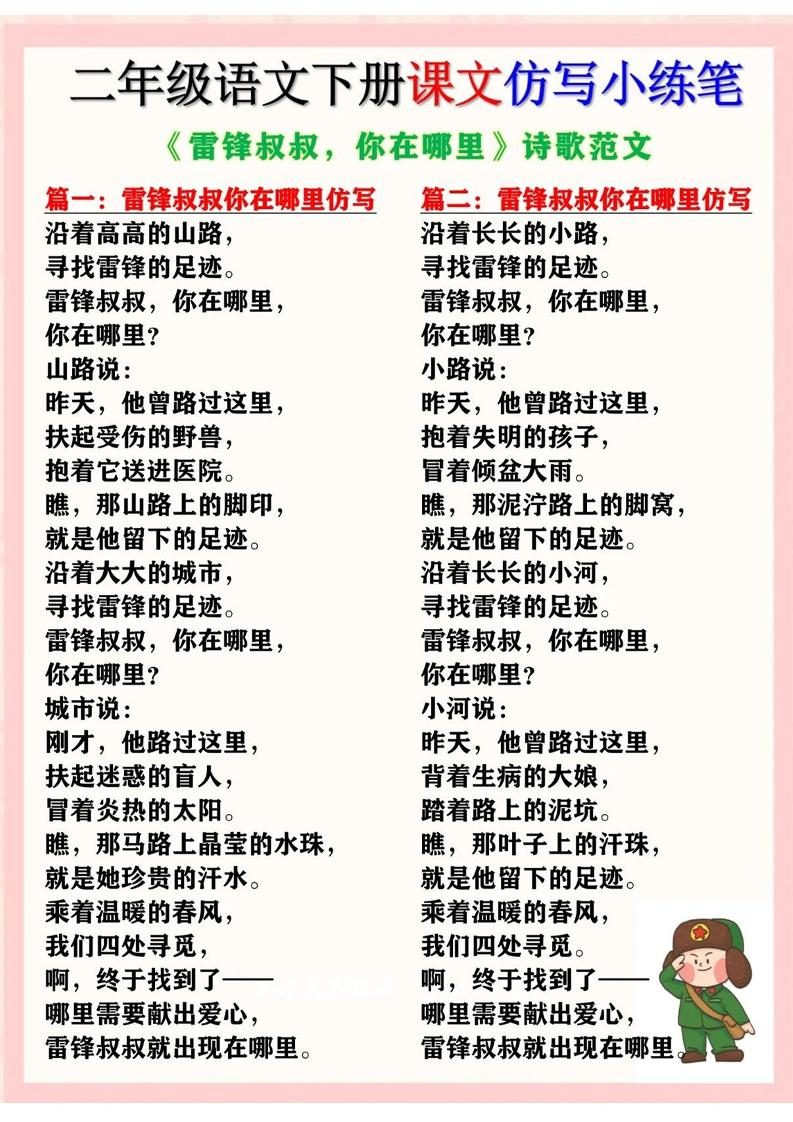 二下语文《雷锋叔叔,你在哪里》仿写诗歌范文11篇(课文仿写小练笔)