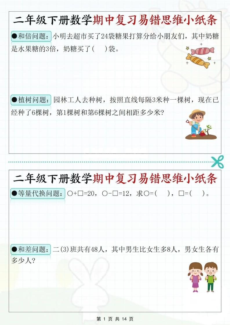 当前位置:首页学科年级二年级二下数学期中复习易错思维小纸条(含答案14页)