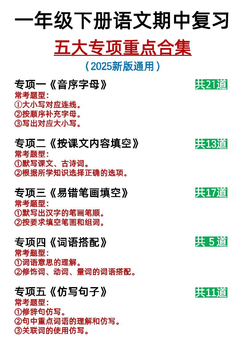 当前位置:首页学科年级一年级25新一下语文期中复习五大专项重点合集14页