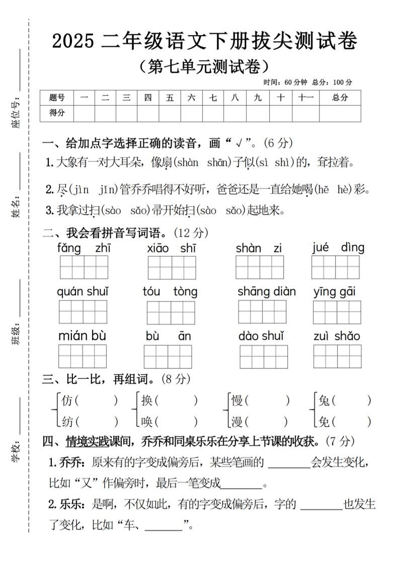 当前位置:首页学科年级二年级二下语文第七单元拔尖测试卷4(4页)