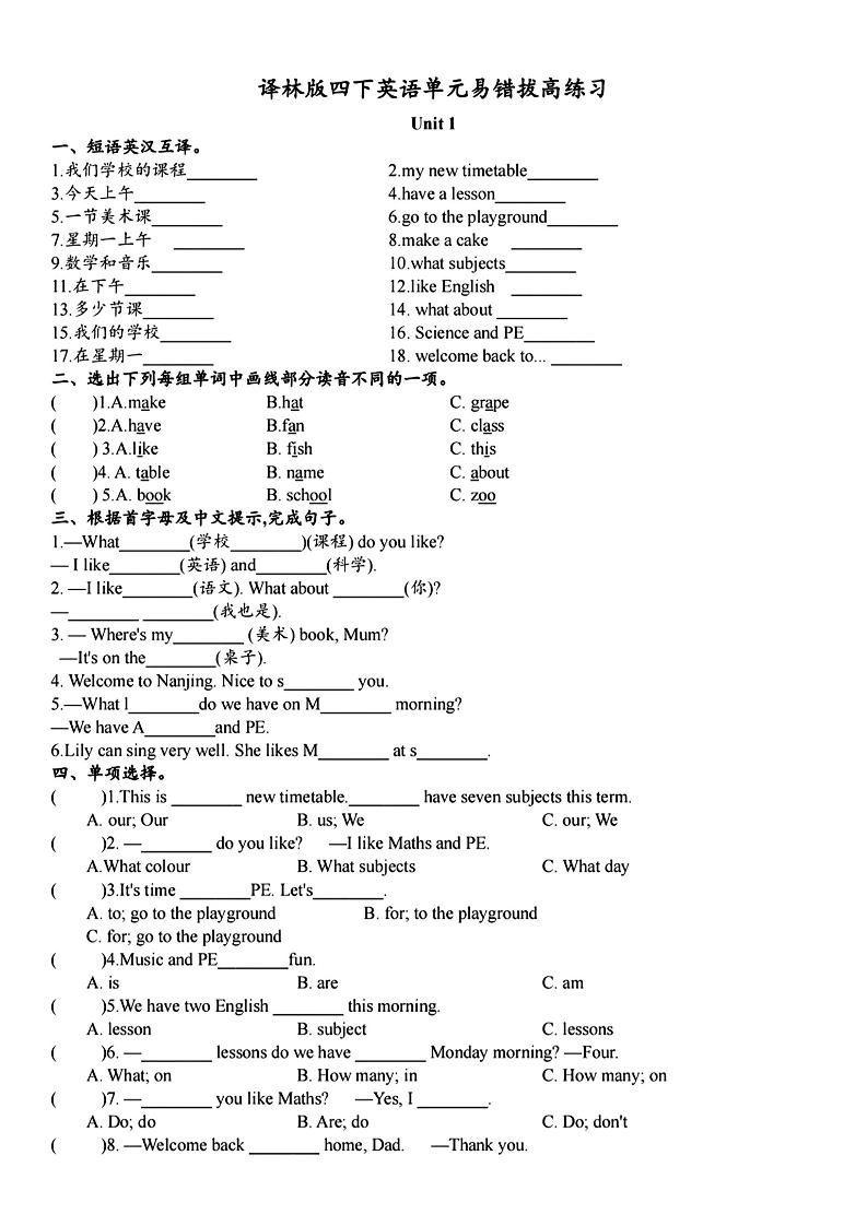 当前位置:首页学科年级四年级四年级下英语单元拔高易错题《译林版》