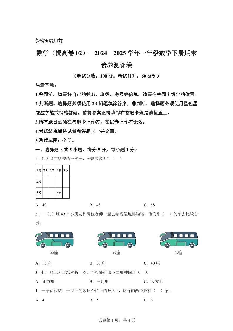 当前位置:首页学科年级一年级2024-2025学年北京版一年级下册期末素养测评数学试卷(提高卷02)
