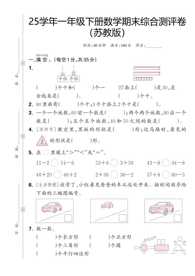 当前位置:首页学科年级一年级25学年一下苏教版数学期末综合测评卷(含答案5页)
