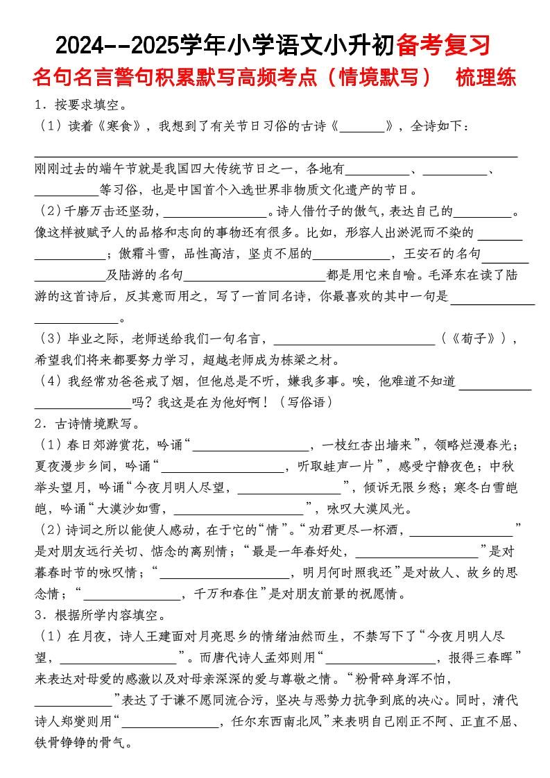 小升初语文【备考复习名句名言警句积累默写高频考点(情境默写)】pdf