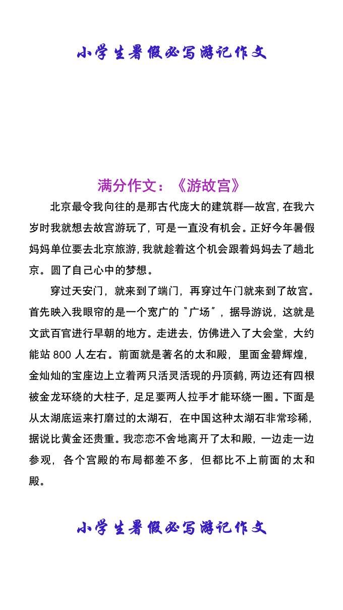 小学生暑假必写游记作文-小升初语文
