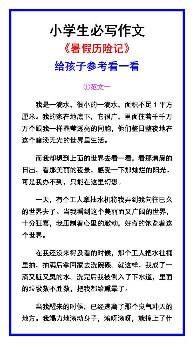 小学生必写作文《暑假历险记》范文素材-小升初语文