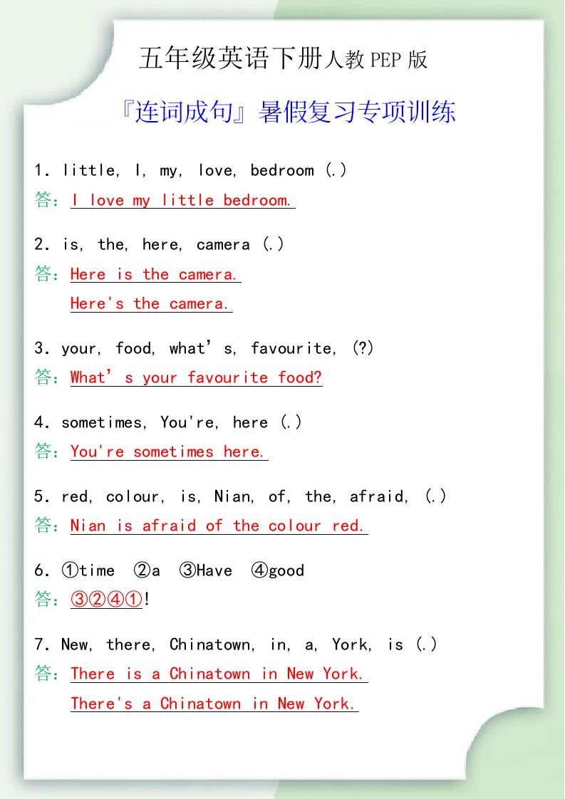 当前位置:首页学科年级五年级五年级英语下册『连词成句』暑假复习专项训练