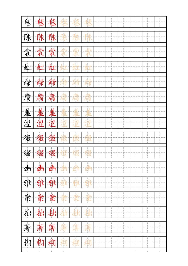 当前位置:首页学科年级六年级六上语文生字描红字帖