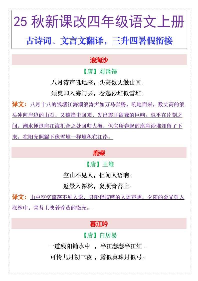 当前位置:首页学科年级四年级【2025秋新版】四年级上册语文古诗词、文言文翻译