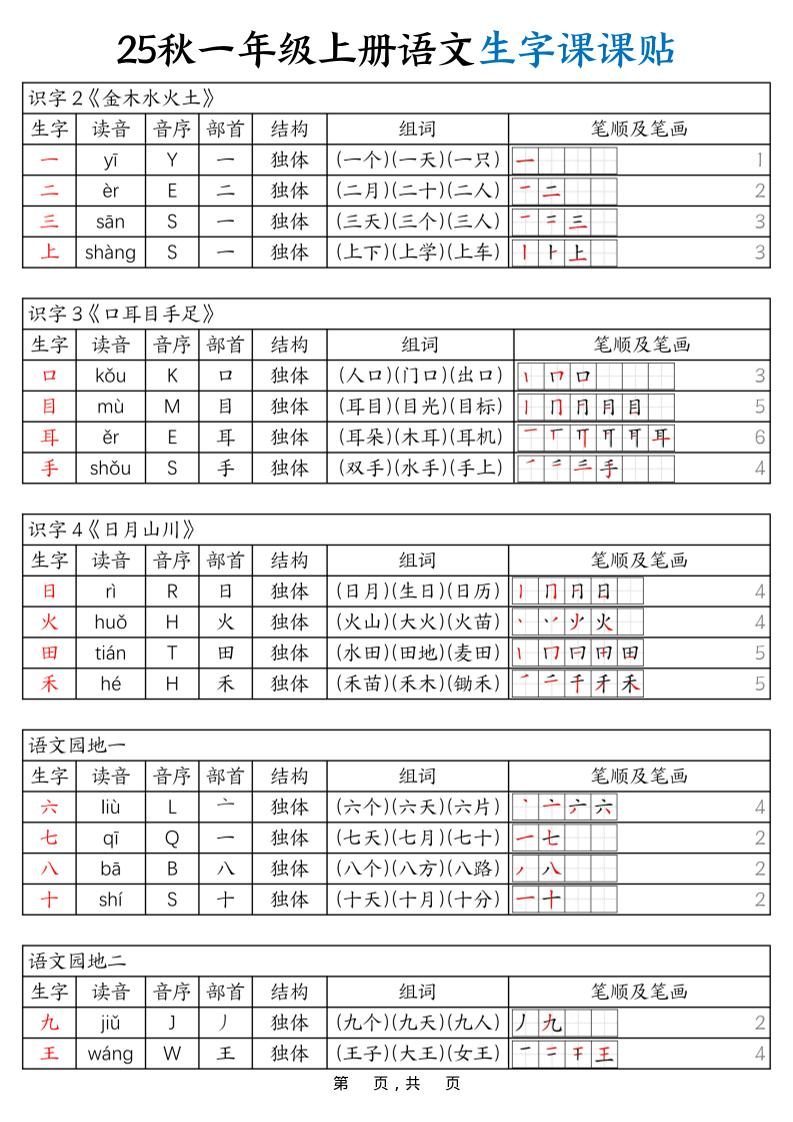 当前位置:首页学科年级一年级25秋一年级上册语文生字课课贴(6页)