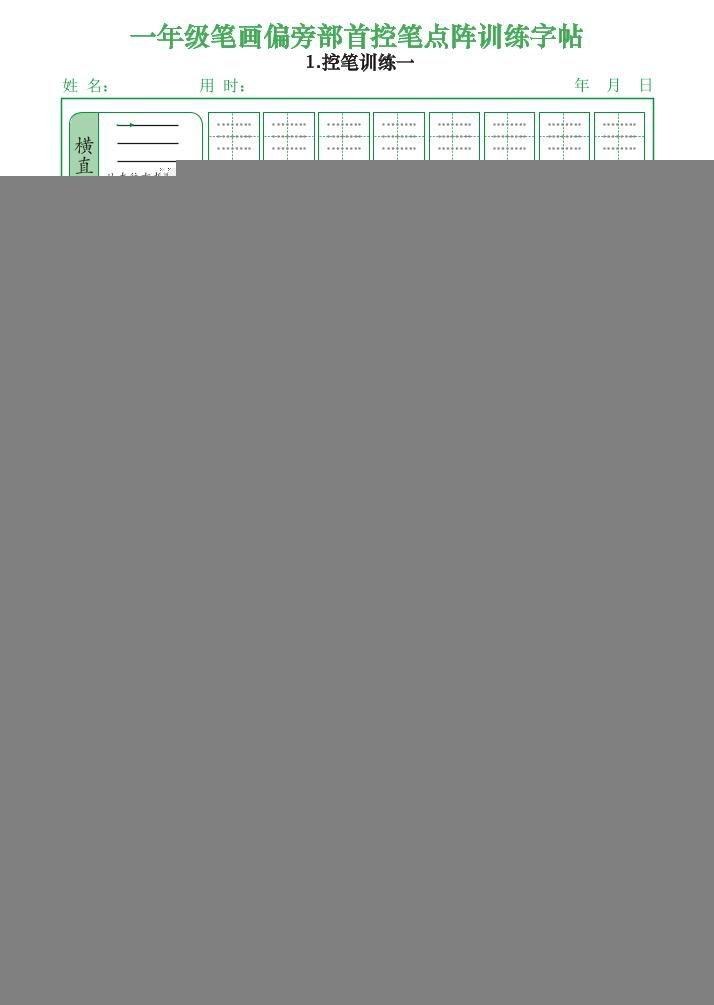 一上语文笔画偏旁部首控笔点阵训练字帖(12页)