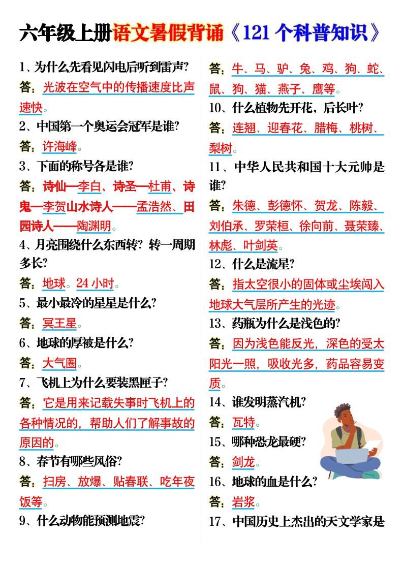 六上语文背诵《121个科普知识》7页