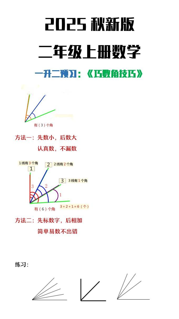 当前位置:首页学科年级二年级【2025秋新版】二年级上册数学巧数角的技巧