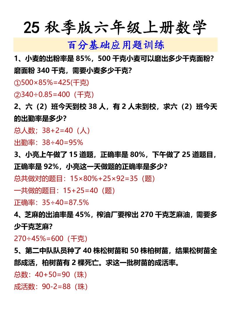 当前位置:首页学科年级六年级【2025秋新版】六年级上册数学百分基础应用题训练